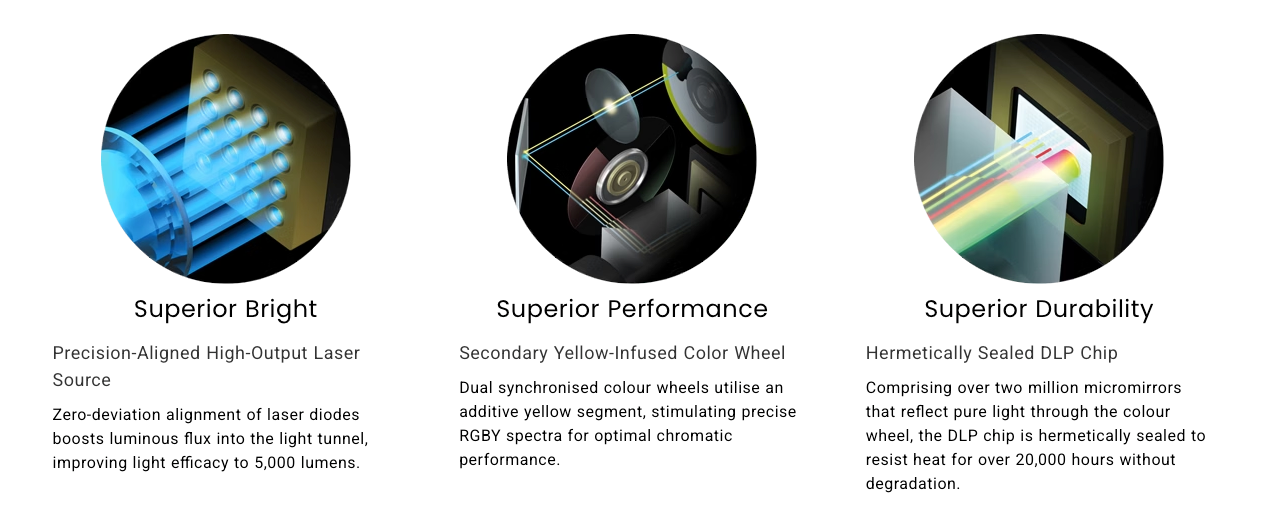 Featuring a native 16:10 aspect ratio and a wide normal throw range, the LU935 is well suited for installations where the projector must be mounted behind the golfer. Its high brightness output and dedicated Golf Picture Mode enhance visibility, contrast, and colour accuracy to support realistic course rendering and reliable simulator performance. Built for long-term use, the sealed DLP optical system provides stable operation over extended hours, while extensive vertical and horizontal lens shift combined with optical zoom allow precise image alignment in challenging spaces.
